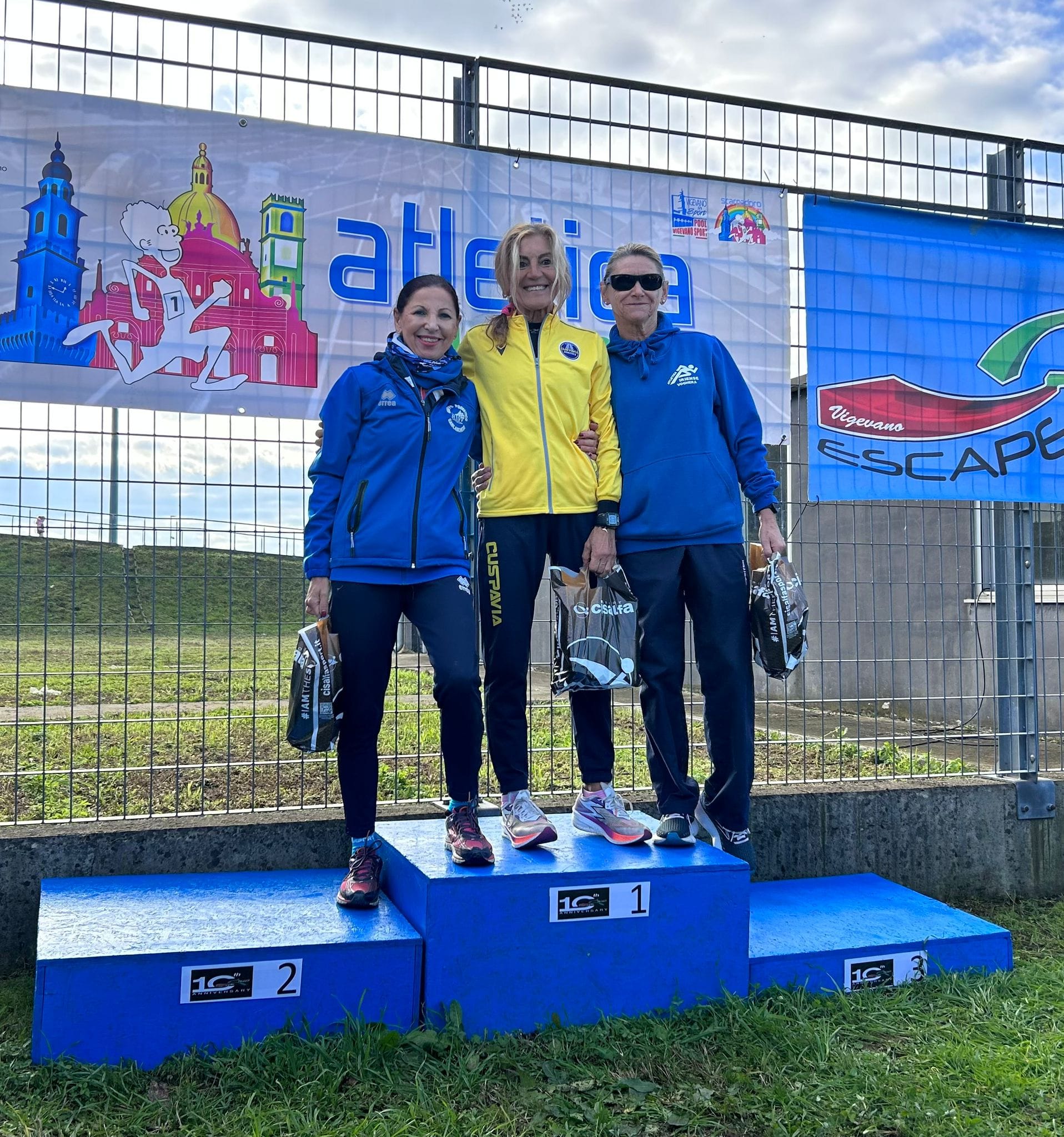 I primi a prendere il via sono stati gli ultrasessantenni maschili e tutte le categorie femminili. Sui due giri del percorso, nella gara in rosa si è presentata vittoriosa al traguardo l’allieva della Bracco Atletica Giulia Macchi che lungo i 4000 metri del tracciato ha staccato, per quanto riguarda graduatoria femminile, la pari categoria dell’atletica Vigevano Benedetta Vittadini e la Junior del Pro Patria Busto Arsizio Margherita Fabris. Nelle categorie per eta’ hanno invece prevalso Veleda Valente (Lyceum Roma XIII) fra le Over23, davanti a Deborah Antipasqua (Atl. Pavese) e a Martina Antico (GP Garlaschese). Simona Bracciale (GP Garlaschese) ha vinto fra le Over35 precedendo Francesca Sorrentino (Buccella Runners) e Benedetta Navanzino (Atl. Vigevano). Joanna Drelicharz (Atl. Lonato) ha invece occupato la prima posizione fra le Over40 anticipando Antonella Cantoni e Marinella Arrigoni entrambe portacolori della Buccella Runners. Fra le cinquantenni ha primeggiato Alessia De Simone (Escape Team) precedendo Cristina Tosello (Atl. Vigevano) e Valerie Fouqueray (GP Garlaschese); nella Over60 Giordana Baruffaldi (CUS Pavia) supera Antonietta Mancini (GP Garlaschese) e Rosanna Rossi (Atletica Iriense Voghera). Nella Over70 infine Annamaria Vaghi (Atl. Pavese) precede la compagna di societa’ Francesca Mattiolo e la vercellese Gianna Vaccari (AS Gaglianico).