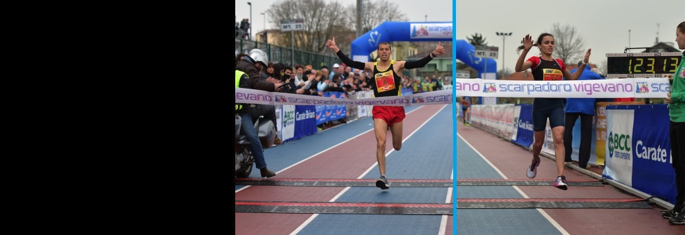 Con i due vincitori della HM, festeggiano i 10 anni di Scarpadoro Half Marathon a Vigevano anche Stefano Emma e Roberta Cigallino, vincitori della 5 km.